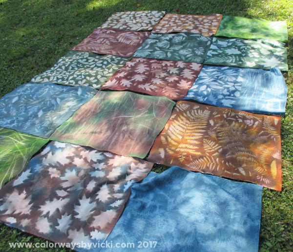 I didn’t want to waste any of the sunprinted fabrics so I used the leftovers to make 34 fabric postcards.