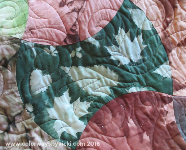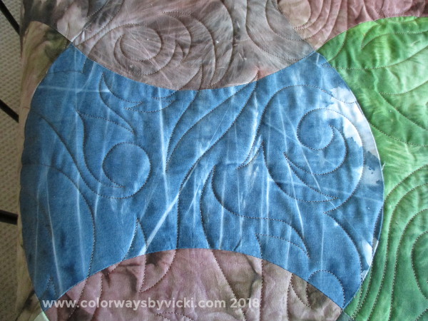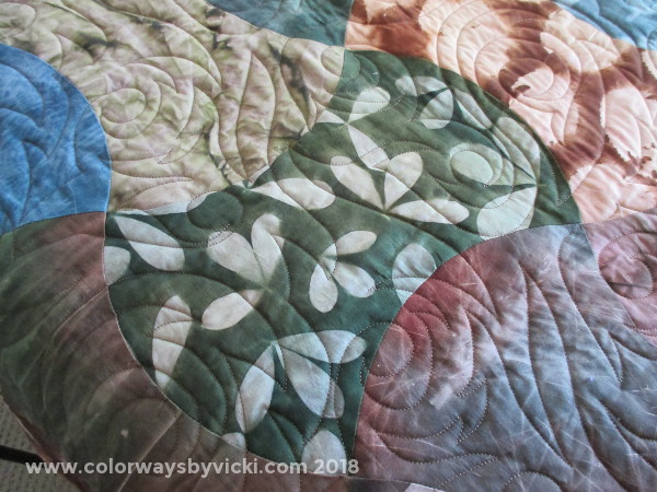 There was no need for fancy quilting as the fabrics are the focus. I used a pantograph called Woodgrain with Highlights (top) and So Fine (bottom) threads.