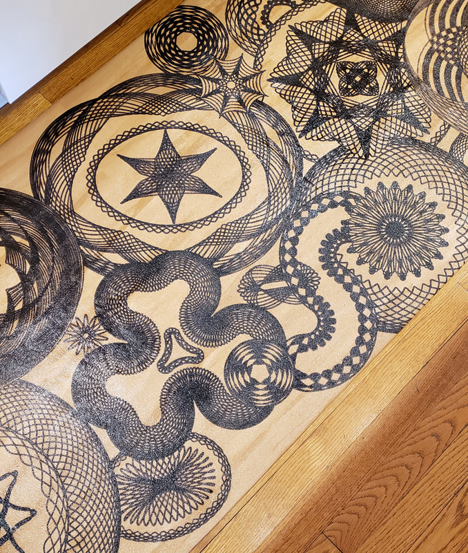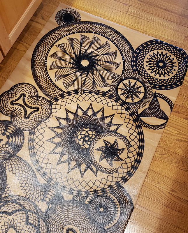 Here’s a gallery with close ups of the designs. All of the designs were done with Wild Gears. Wild Gears are an ingenious upgrade of our childhood Spirograph. You know that Spirograph was brilliant because it’s just as popular as ever. It was one of my favorite toys and Wild Gears is one of my favorite grown up toys. (I was going to say “adult toys” but it really doesn’t fit in that general category.)
