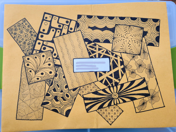 These are some of the quilt labels (and a couple of other projects) that I have made with Wild Gears or Zentangle.